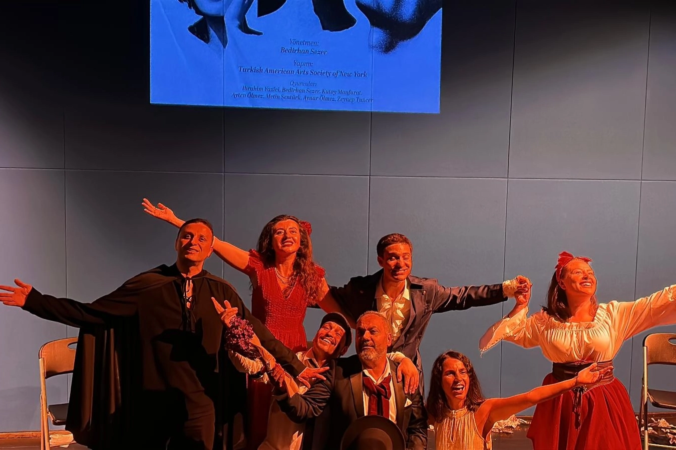 Yönetmenliğini Bedirhan Sezer’in üstlendiği, yönetmen yardımcılığını Kutay Manfurat’ın yaptığı oyunda, TAASNY Başkanı İbrahim Yazıcı, Ayten Ölmez, Metin Şentürk, Aynur Ölmez ve Zeynep Tuncer gibi isimler rol aldı. Amatör oyuncuların kısa sürede gösterdiği gelişim ve sahnedeki özgüven, izleyicilerden tam not aldı.