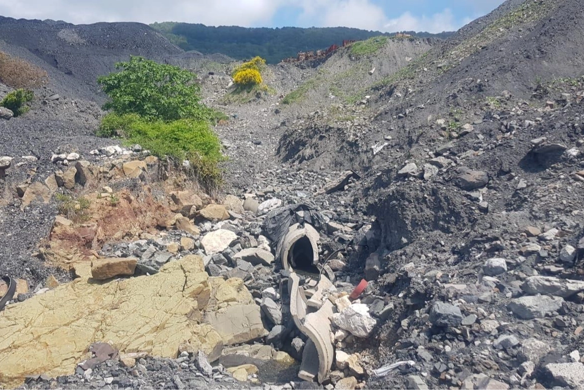 Yapılan incelemelerde, bir kömür ocağının dere yatağı üzerinden denize maden atığı boşalttığı belirlendi.