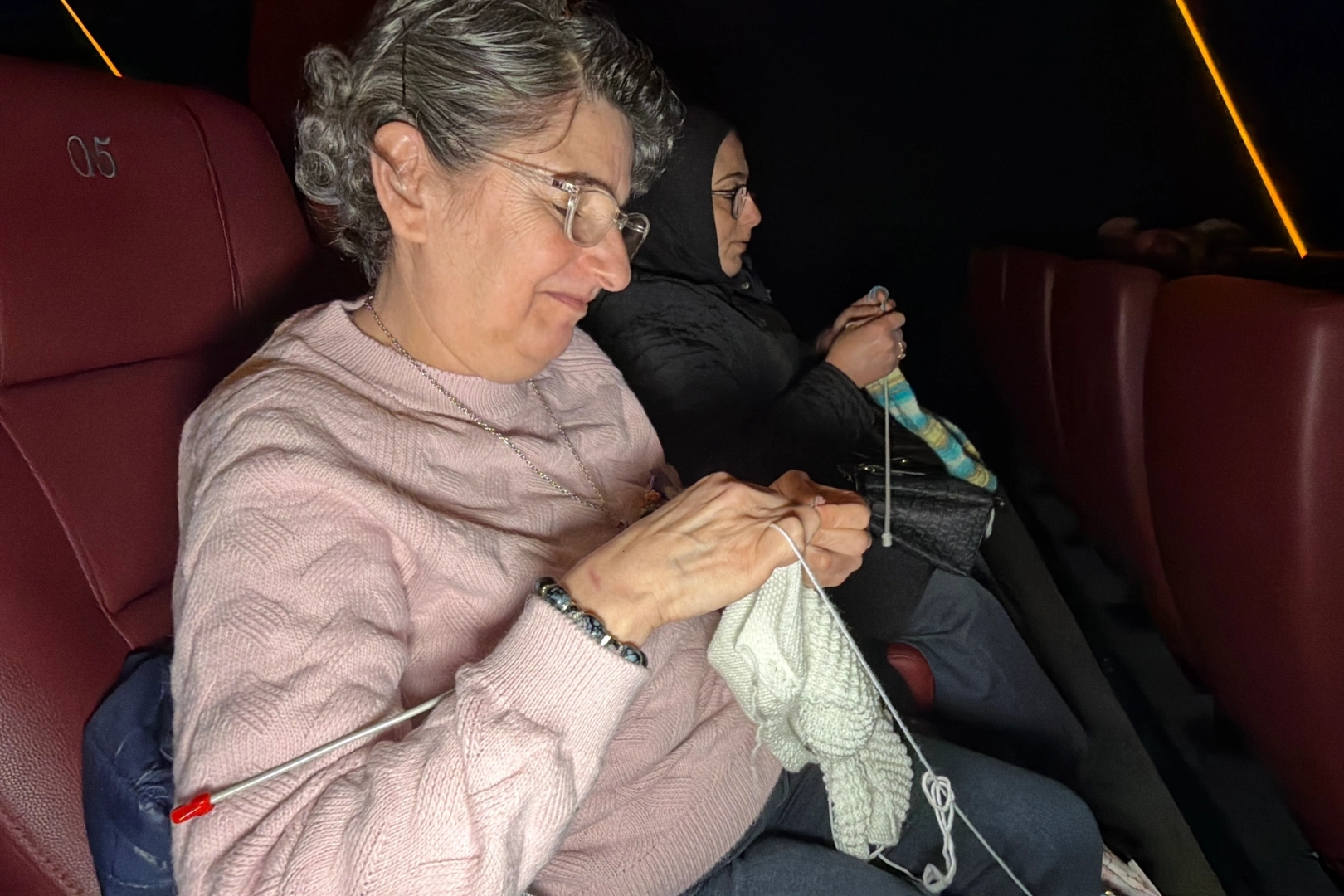 Düzce’de bir araya gelen kadınlar, sinema salonunda film izlerken ördükleri örgülerle ihtiyaç sahibi çocuklara destek olmayı amaçlıyor.
