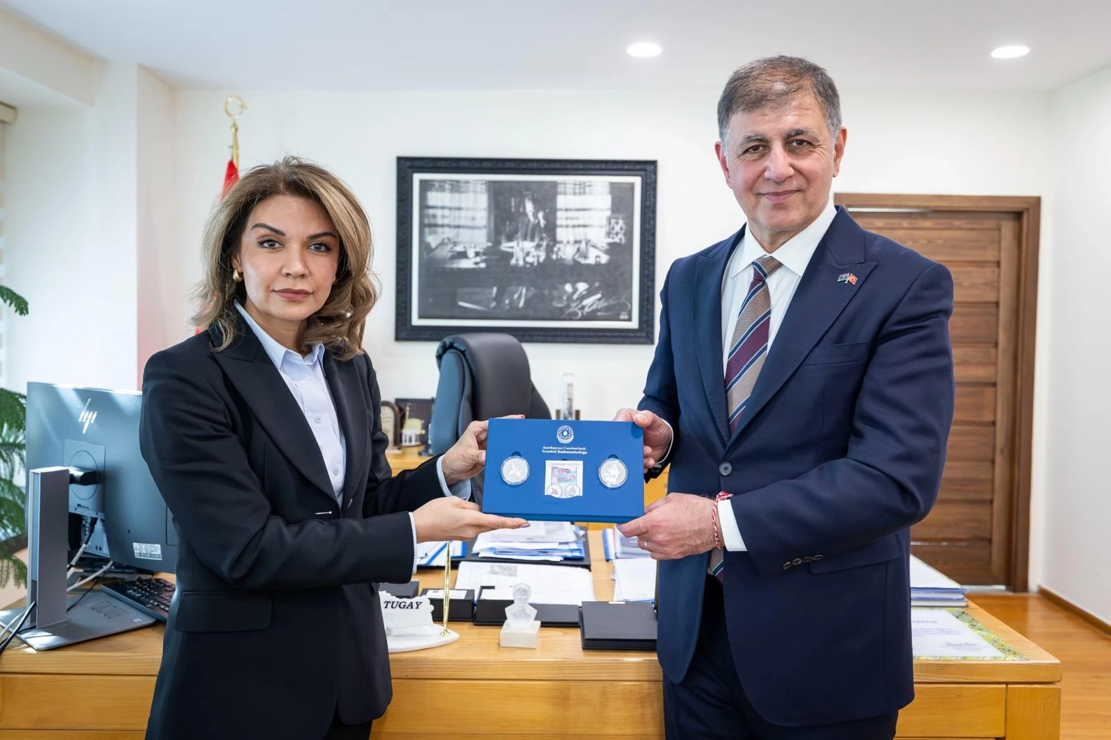 İzmir Büyükşehir Belediye Başkanı Dr. Cemil Tugay, Azerbaycan’ın İstanbul Başkonsolosu Narmina Mustafayeva ve beraberindeki heyeti makamında ağırladı. Görüşmede İzmir ile Bakü’nün kardeş şehir oluşunun 40. yılının kutlanması gündeme gelirken, karşılıklı ilişkilerin artırılması kararlaştırıldı.