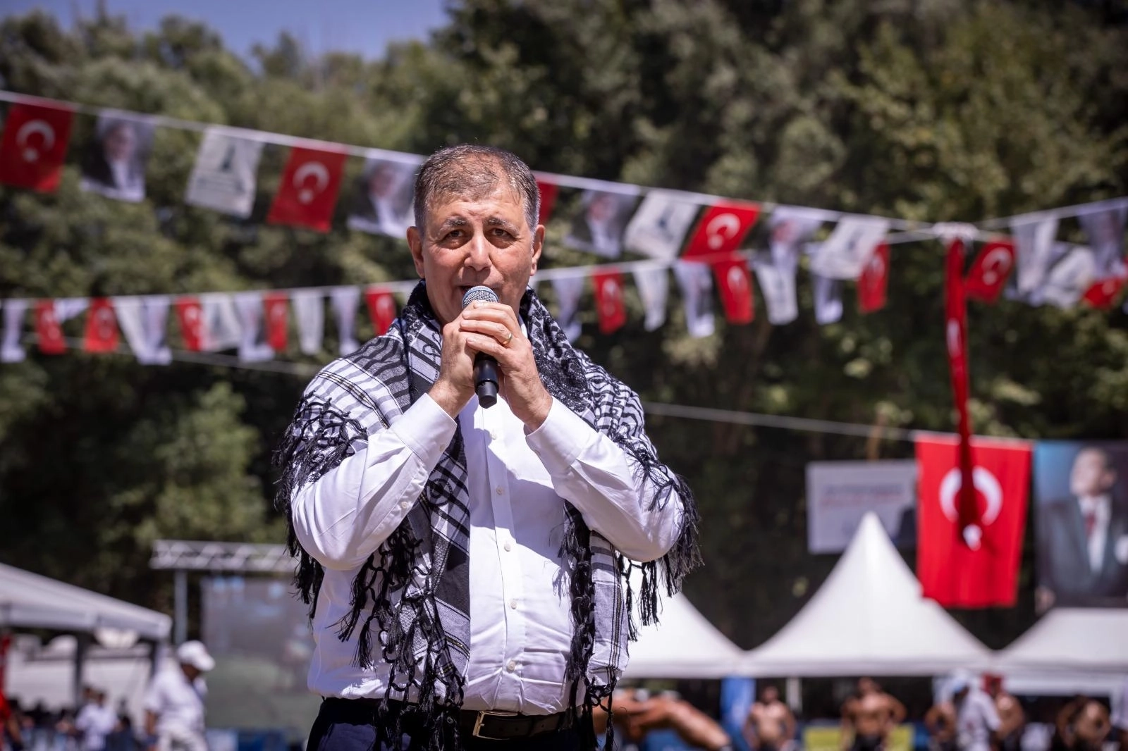İZMİR (İGFA) - İzmir Büyükşehir Belediye Başkanı Dr. Cemil Tugay, Ödemiş’te düzenlenen Gölcük Yaylası Yağlı Güreşleri’ne katıldı. İzmir Büyükşehir Belediyesi, Ödemiş Belediyesi ve Türkiye Geleneksel Güreşler Federasyonu iş birliğiyle gerçekleştirilen etkinlikte 500’e yakın sporcu ve 30’dan fazla başpehlivan mücadele etti.