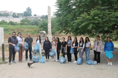 İZMİR (İGFA) - İzmir Efes Selçuk'ta su kemerlerinden, Artemis Tapınağı'na, Ayasuluk Kalesi çevresinden 14. yüzyıl Aydınoğlu Beyliği Dönemi yapılarının çevresine kadar kentin dört bir yanında gönüllülük esasıyla temizlik yapan öğrenciler, kültürel miras alanlarının ziyaretçiler tarafından sağlıklı bir şekilde ziyaret edilmesi açısından çevre temizliğinin önemine de dikkat çektiler.